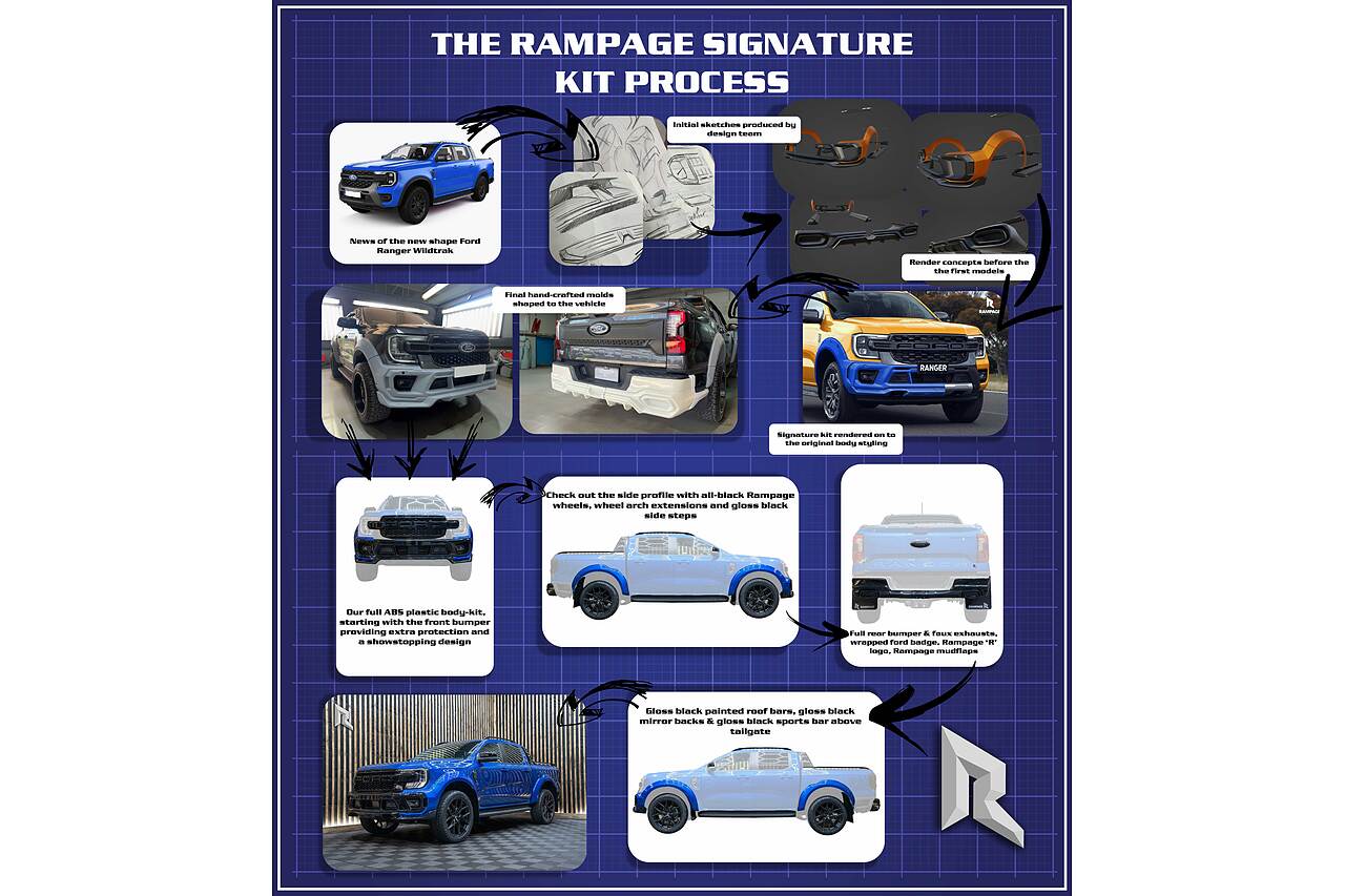 We are very proud to finally showcase the culmination of years of hard work which has led to this, designed by Rampage Vehicles, for Rampage Vehicles – The Ford Ranger Wildtrak with the bespoke Rampage Vehicles, handcrafted kit!